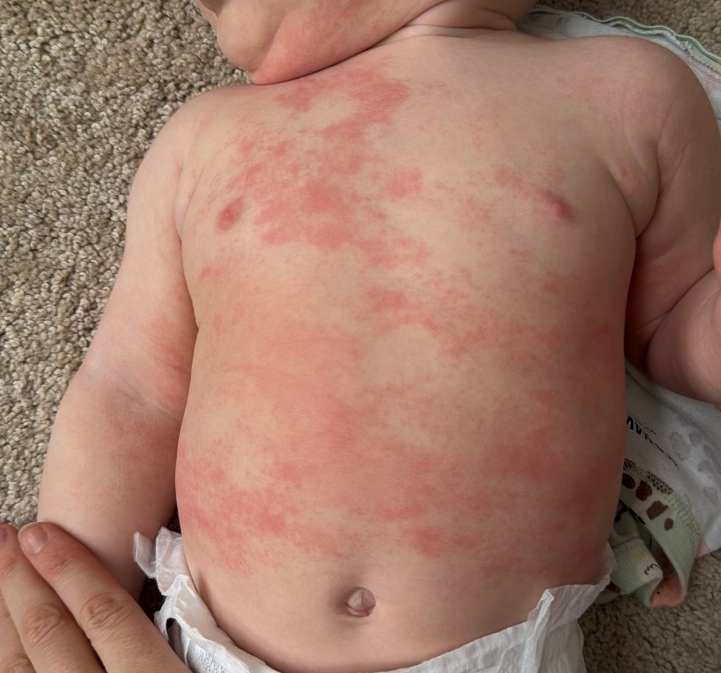 We messaged our pediatrician. She recommended a short course of hydrocortisone (the gentlest topical steroid).